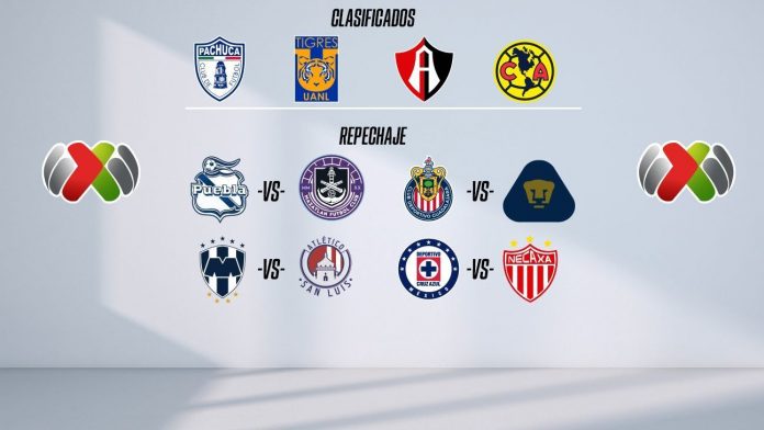 Los partidos del Repechaje tendrán a Puebla, Chivas, Monterrey, Cruz Azul como los locales, mientras que Necaxa, San Luis, Pumas y Mazatlán jugarán de visitantes.