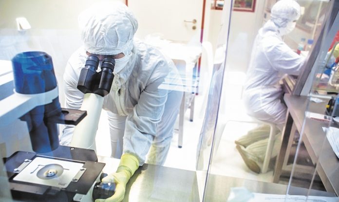 A laboratory specialist uses a microscope to check cells during the last phase of vaccine manufacture inside a clean laboratory at the Sotio AS biotechnology company in Prague, Czech Republic, on Wednesday, July 20, 2016. Czech Republic’s richest man, billionaire Petr Kellner's Sotio biotech company, which is seeking to develop active cellular immunotherapy for treatment of prostate, ovarian and lung cancer, has invested "billions of koruna" into research and clinical development, the unit's spokesman, Richard Kapsa, said without elaborating. Photographer: Martin Divisek/Bloombergt: